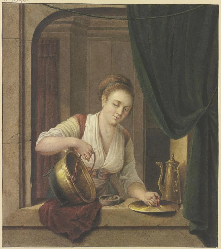 En kok opvasker opvasken ved vinduet - Pieter Recco
