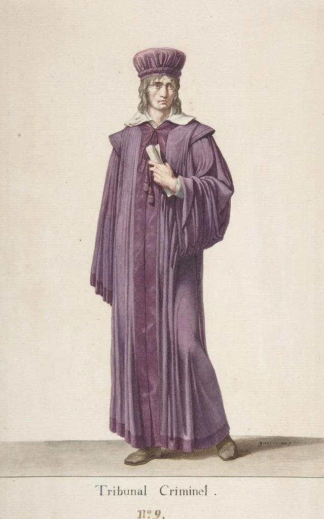 Pierre-Narcisse Guérin, aktiv i begyndelsen af det 19. århundrede, er en fremtrædende repræsentant for neoklassicisme, en kunstbevægelse der fremmer genkomsten til antikkens værdier. Uddannet ved Académie des Beaux-Arts, blev han påvirket af kunstnere som Jacques-Louis David, hvis dramatiske sans og kompositionsstil han arvede. Guérin var også en indflydelsesrig lærer, der uddannede mange kunstnere, som videreførte hans arv. "En dommer i kriminalretten" illustrerer perfekt hans engagement i seriøse og moralske temaer, samtidig med at det demonstrerer hans tekniske kunnen og sans for detaljer.