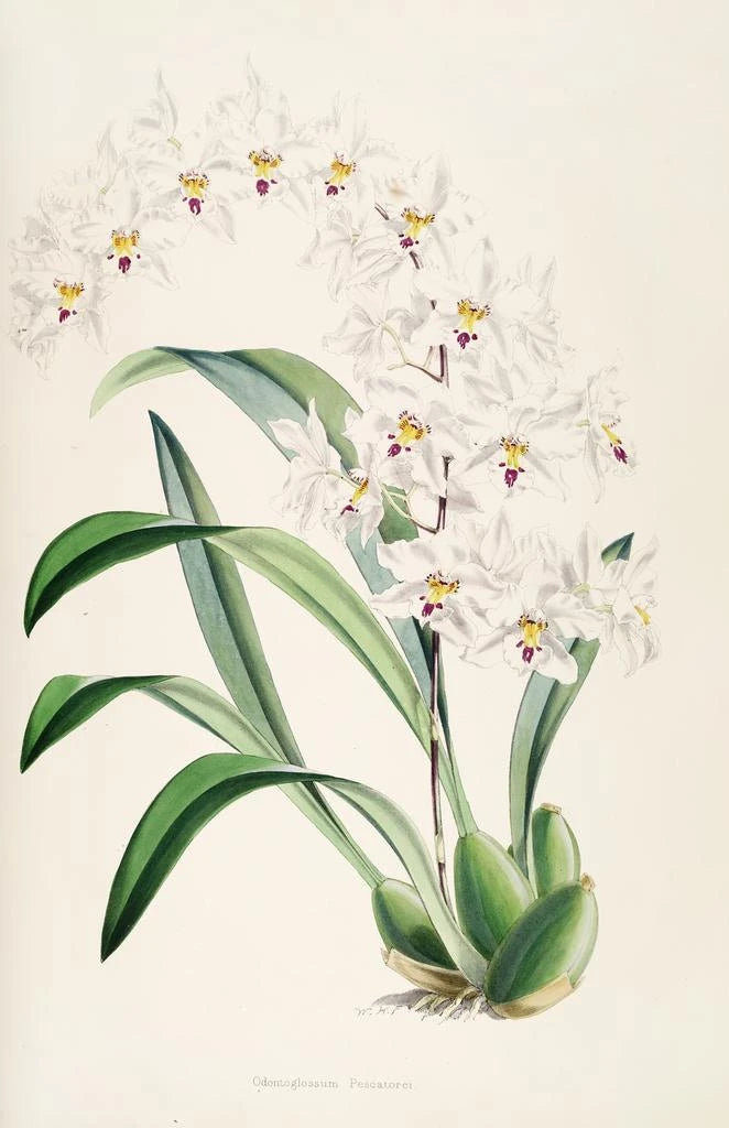 James Bateman, botaniste et artiste du XIXe siècle, a su marier science et art dans ses œuvres. Influencé par le mouvement victorien, il a consacré sa vie à l'étude des plantes exotiques, en particulier des orchidées. Son travail a été marqué par une volonté de rendre hommage à la diversité de la nature, tout en éduquant le public sur les merveilles botaniques. Bateman a également joué un rôle clé dans la popularisation des orchidées en Europe, contribuant à leur statut d'objets de collection prisés. Sa passion pour la botanique et son talent artistique font de lui une figure incontournable de l'art floral.