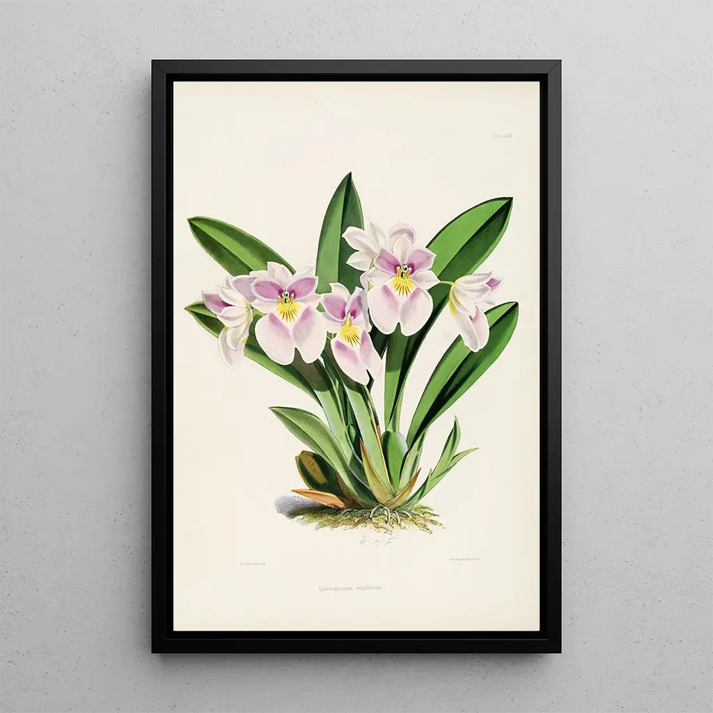 Kunsttrykket Odontoglossum Pl28 er et ideelt dekorativt valg til at berige dit hjem, uanset om det er i stuen, på kontoret eller i soveværelset. Dets trykkvalitet sikrer en enestående trofasthed over for farver og detaljer i det originale værk, hvilket gør det muligt fuldt ud at værdsætte dets skønhed. Dette lærred tilføjer et strejf af friskhed og elegance til din indretning og skaber en beroligende og inspirerende atmosfære. Ved at integrere det i dit rum inviterer du naturen til at blomstre i dit hjem, samtidig med at du fejrer den botaniske kunst i alle dens former.