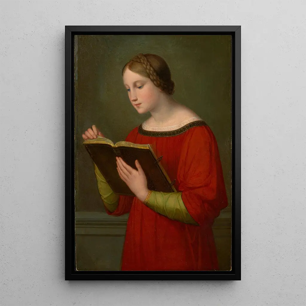 "Une fille lisant la Bible" af Marie Ellenrieder er et værk præget af blidhed og spiritualitet. Szenen skildrer en ung pige opslugt af sin læsning, omgivet af et blødt lys, der oplyser hendes ansigt og siderne i den hellige bog. Pastelfarver dominerer lærredet, hvilket skaber en fredelig og kontemplativ atmosfære. Ellenrieder bruger en delikat teknik til at gengive teksturerne af tøjet og håret, hvilket tilføjer en næsten levende dimension til motivet. Dette kunsttryk inviterer til refleksion og ro, og tilbyder et suspendere øjeblik i tiden.
