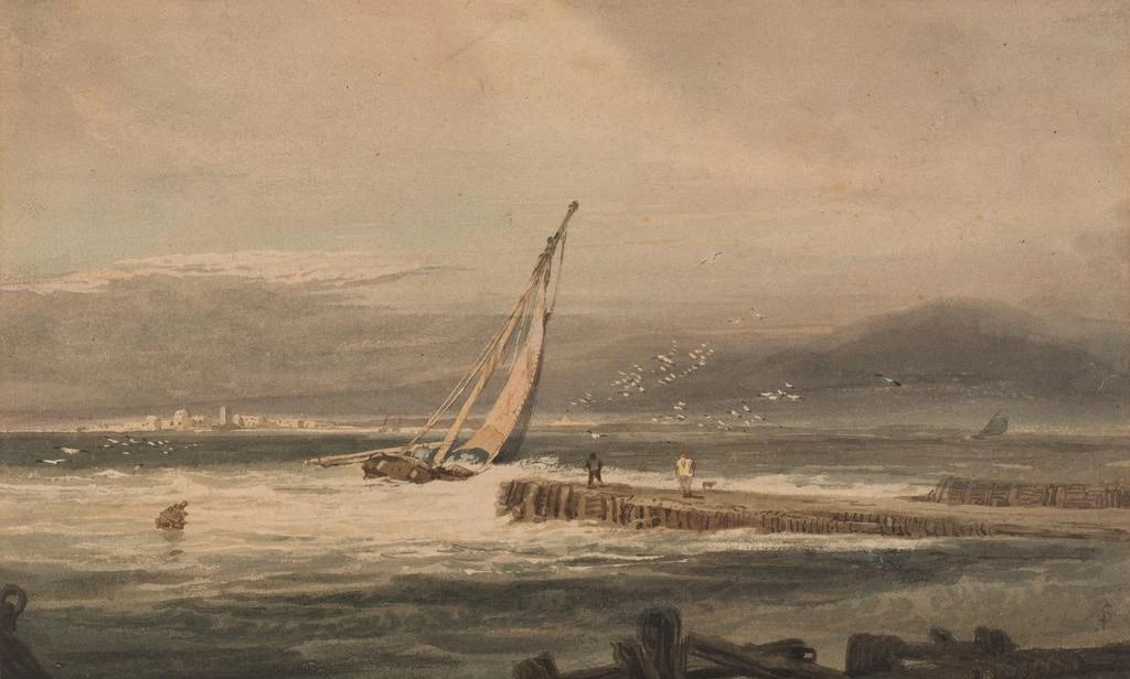 Kunsttrykket En stærk vind af Samuel Prout fremkalder en livlig scene, hvor vinden synes at give liv til landskabet. De levende farver og de dynamiske penselstrøg indfanger energien fra en blæsende dag, hvor bådenes sejl fyldes, og træerne bøjer sig under kraften af pustet. Prout, med sit talent for at formidle lys og atmosfære, formår at transportere betragteren til hjertet af denne bevægelige natur, hvilket skaber en fordybende oplevelse, der inviterer til drømmeri og flugt.