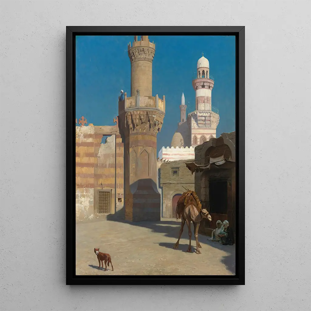 I "En varm dag i Kairo" tager Jean-Léon Gérôme os med til hjertet af Egypten, hvor solens varme næsten føles håndgribelig. Dette kunsttryk skildrer en scene fra dagligdagen, hvor figurer blander sig med byens typiske arkitektur. De varme og gyldne farver dominerer, hvilket skaber en livlig og dynamisk atmosfære. Gérôme excellerer i detaljeringen, fra skygger til teksturer på tøjet, hvilket gør hvert element levende. Kunstværket inviterer seeren til at føle den vibrerende energi og skønheden i den egyptiske kultur, samtidig med at det giver et indblik i det lokale liv.