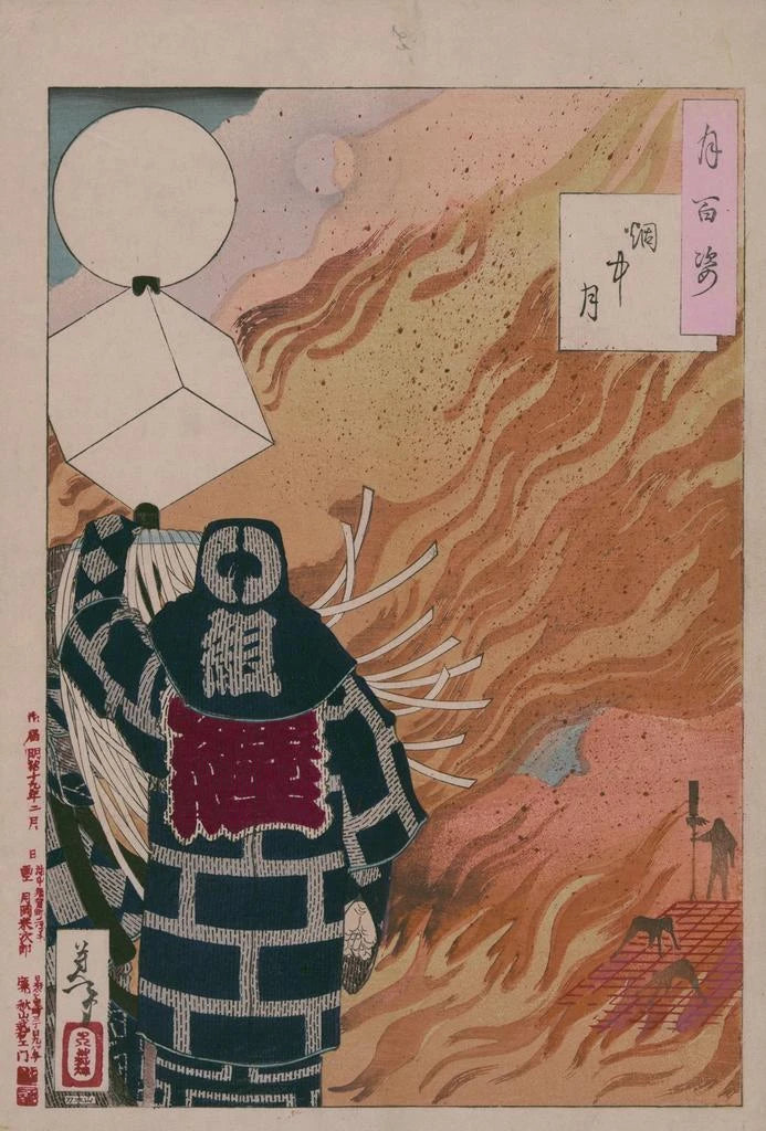 Yoshitoshi, en ikonisk figur inden for ukiyo-e, markerede det 19. århundrede med sine nyskabende og udtryksfulde værker. Påvirket af tidens omvæltninger formåede han at fange dybe følelser gennem sine skildringer af dagliglivet og mytologiske fortællinger. Ench no tsuki, hvilket betyder "månelys", er et perfekt eksempel på hans unikke stil, der forener tradition og modernitet. Hans arbejde har ikke blot bevaret den japanske kultur, men også banet vejen for nye former for kunstnerisk udtryk.