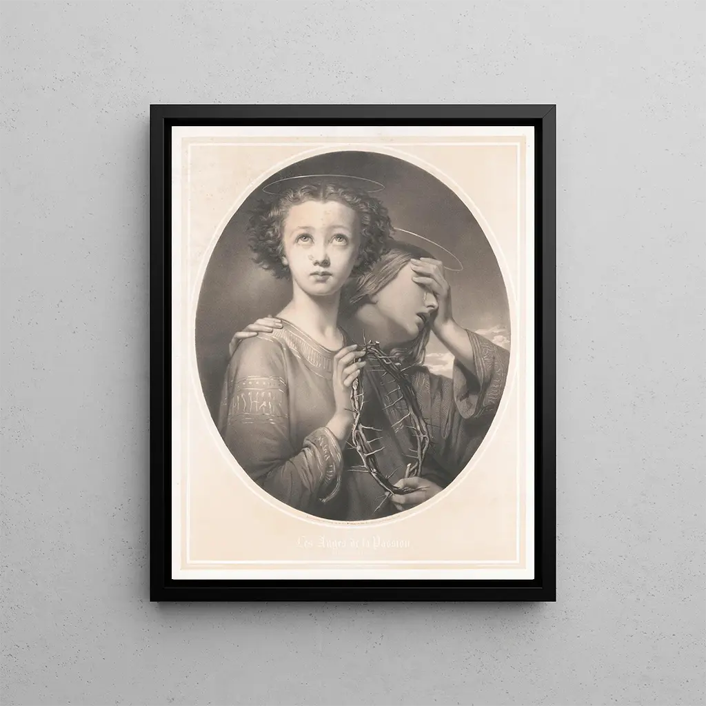 L'œuvre 'Les anges de la passion', skabt af Goupil Cie, fremkalder en himmelsk scene, hvor engle er samlet omkring et tema af fromhed og spiritualitet. Selvom der er få oplysninger tilgængelige om tilknytningen af dette værk, indkapsler det typiske elementer af religiøs kunst, med særlig opmærksomhed på lys og udtryk i de engleagtige figurer. Fremstillingen af engle, ofte symbol på beskyttelse og vejledning, skaber en beroligende og inspirerende atmosfære. I den moderne kontekst kan dette værk berige et interiør ved at tilføje en åndelig dimension og en følelse af fred. De hellige temaer, selvom de ofte er historiske, finder genklang i moderne dekoration, hvor religiøs kunst genfortolkes for at integrere sig harmonisk i nutidige opholdsrum. Oplev skønheden af dette værk på Artem Legrand.