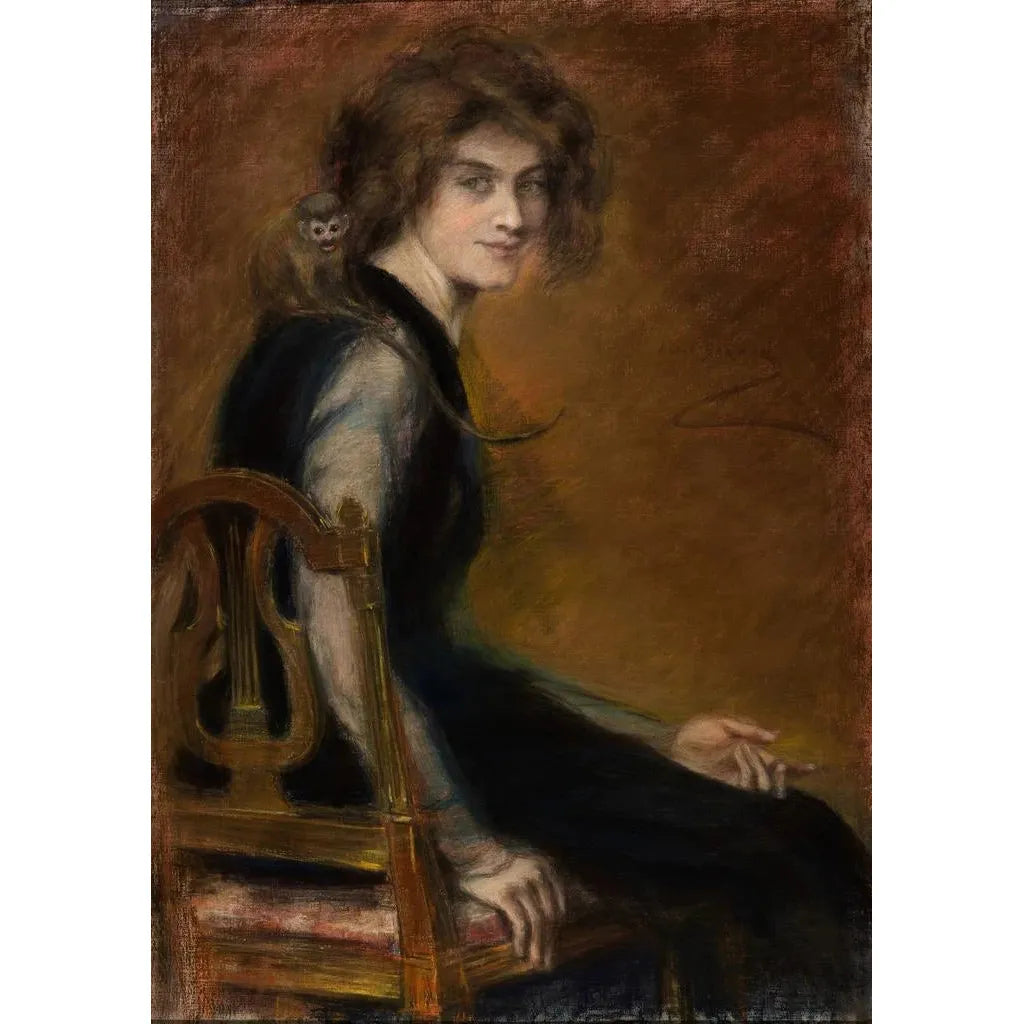 I dette rørende værk giver Alice Pike Barney os en intim scene, hvor en [[singe de compagnie]] står ved siden af sin ejerinde. Kompositionen er præget af livlige farver og udtryksfulde detaljer, der fanger det unikke forhold mellem dyret og mennesket. Kunstneren bruger oljemaleriteknikker til at skabe en varm og indbydende atmosfære. De udvekslede blikke mellem [[singe de compagnie]] og kvinden afslører en dyb samhørighed, der inviterer betragteren til at reflektere over de delte følelser. Denne kunsttryk af [[Singe de compagnie]] er en fejring af venskab og ømhed.