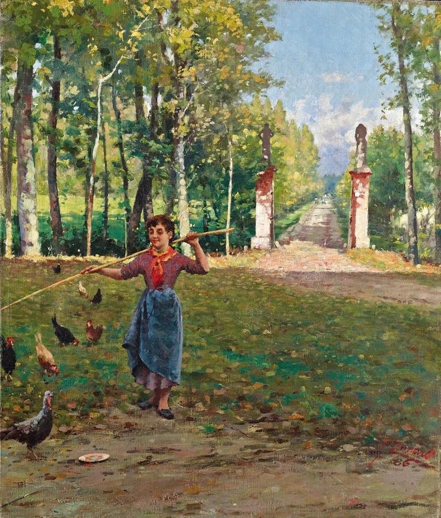 I den fascinerende kunstverden formår nogle værker at overskride det enkle lærred for at fremkalde følelser og minder. "Entré til Villa Camerini" af Fausto Zonaro er et af disse værker, der gennem sin skønhed og atmosfære transporterer betragteren til en verden af ro og eftertanke. Dette værk, der fanger lyset fra en solrig eftermiddag, inviterer til en visuel gåtur gennem en frodig have, hvor natur og arkitektur mødes i en perfekt harmoni. Blikket tiltrækkes straks af detaljernes delikatesse, farvernes rigdom og den afbalancerede komposition, der vidner om kunstnerens ubestridelige talent.
