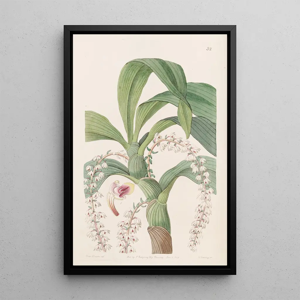 Kunsttrykket af Éria à nombreuses queues er et værk, der fremkalder ynde og skønhed i eksotiske planter. De skinnende farver og de delikate former af blomsterne udfolder sig med elegance, hvilket skaber et levende maleri, der fanger øjet. Teknikken med akvarel gør det muligt at gengive subtile nuancer og teksturer af bladene, hvilket skaber en atmosfære, der er både rolig og livlig. Hvert detalje er omhyggeligt udarbejdet, hvilket inviterer til en opmærksom betragning af dette botaniske vidunder.