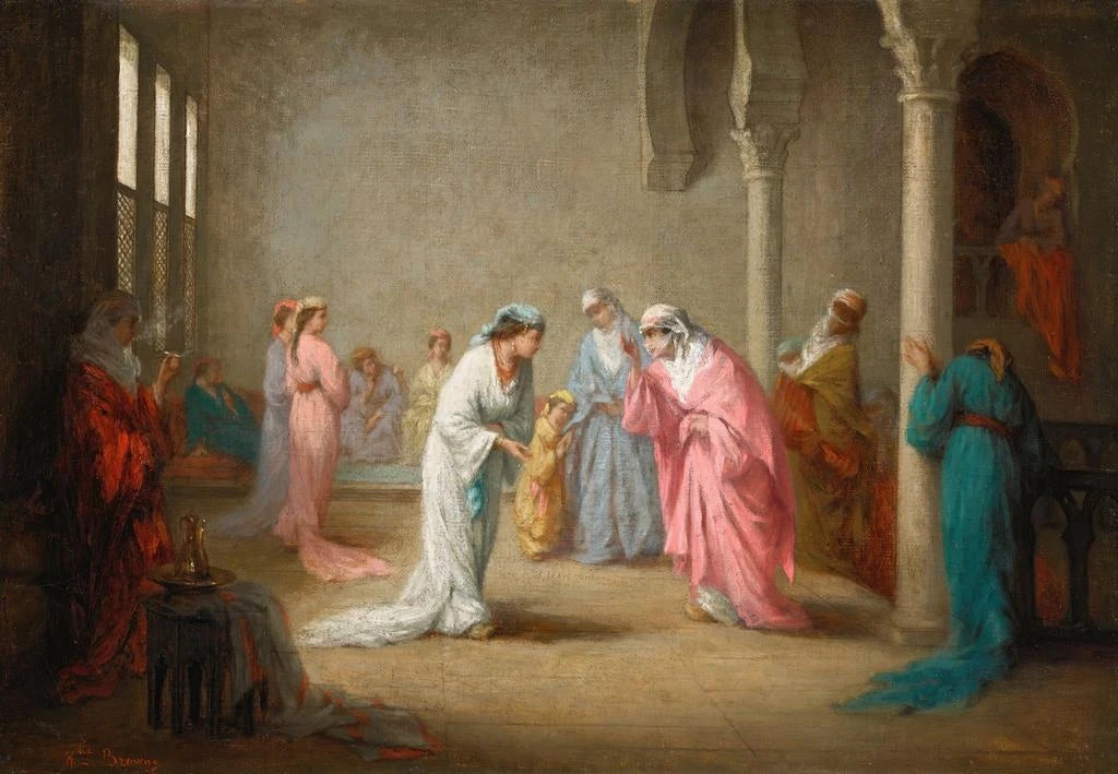 Henriette Browne, kunstner fra det 19. århundrede, er kendt for sine skildringer af det orientalske liv, ofte præget af en feminin følsomhed. Født i Frankrig, blev hun påvirket af de orientalistiske strømninger i sin tid, som søgte at udforske og portrættere fjerne kulturer. Browne rejste til Orienten, hvilket berigede hendes værker med en sjælden ægthed. Hendes stil er kendetegnet ved en særlig opmærksomhed på detaljer og en palette af livlige farver, karakteristisk for orientalismen. Gennem sine malerier har hun bidraget til en nyfortolkning af den feminine repræsentation i kunsten, og tilbyder en nuanceret og poetisk vision af livet i harems.