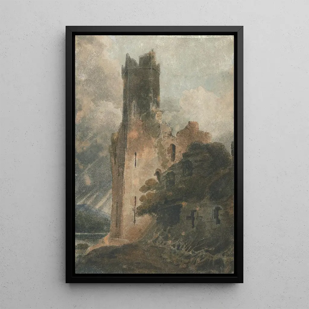 "En slot af et slot" af John Sell Cotman tager os med til en middelalderlig verden, hvor historisk arkitektur møder landskabets skønhed. Lærredet skildrer et majestætisk tårn, omgivet af grønne omgivelser, med en skydækket himmel, der tilføjer en dramatisk dimension til scenen. De jordnære farver og nuancer af grønt skaber en fredelig atmosfære, mens Cotmans teknik, kendetegnet ved fine penselstrøg, giver liv til denne imponerende struktur. Kunstværket fremkalder en følelse af nostalgi og forundring og inviterer betragteren til at forestille sig historierne, der gemmer sig bag disse mure.