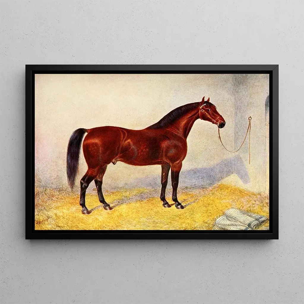 Étalon Cleveland Bay Sultan : en majestætisk hestekunstværk i fokus « Étalon Cleveland Bay Sultan » af Frank Babbage skildrer en hestescene præget af elegance. Lærredet, rigt på detaljer, fremhæver kraften og yndefaldet hos denne hest, hvis glansfulde pels fanger lyset med glans. De varme, jordnære farver fremkalder et pastoral landskab, mens Babbages teknik, der blander realisme og romantik, giver dyret en næsten levende atmosfære. Baggrunden, subtilt sløret, fokuserer opmærksomheden på hovedmotivet og inviterer til at beundre den naturlige skønhed af dette L. Frank Babbage : en mester i dyre-realisme Frank Babbage, aktiv i begyndelsen af det 20. århundrede, er kendt for sine troværdige gengivelser af dyr, især heste. Inspireret af britiske kunsttraditioner har han formået at fange essensen af sine motiver med bemærkelsesværdig præcision. Hans karriere, præget af en passion for ridning og natur, har givet ham et navn i det kunstneriske miljø. På en tid hvor realisme dominerede, formåede Babbage at skille sig ud ved sin evne til at kombinere teknik og følelse, hvilket gør ham til en vigtig figur inden for dyrekunst. En dekorativ kunsttryk med mange fordele Reproduktionen af « Étalon Cleveland Bay Sultan » er et dekorativt stykke, der vil berige ethvert rum, uanset om det er en stue, et kontor eller et soveværelse. Dens trykkvalitet sikrer en trofast gengivelse af farver og detaljer fra det originale værk, hvilket giver en æstetisk tiltrækning. Ved at integrere dette lærred i dit hjem tilføjer du et strejf af elegance og natur, samtidig med at du hylder Frank Babbages kunst. Dette lærred bliver dermed et centralt punkt, der vækker beundring og refleksion hos dine gæster.