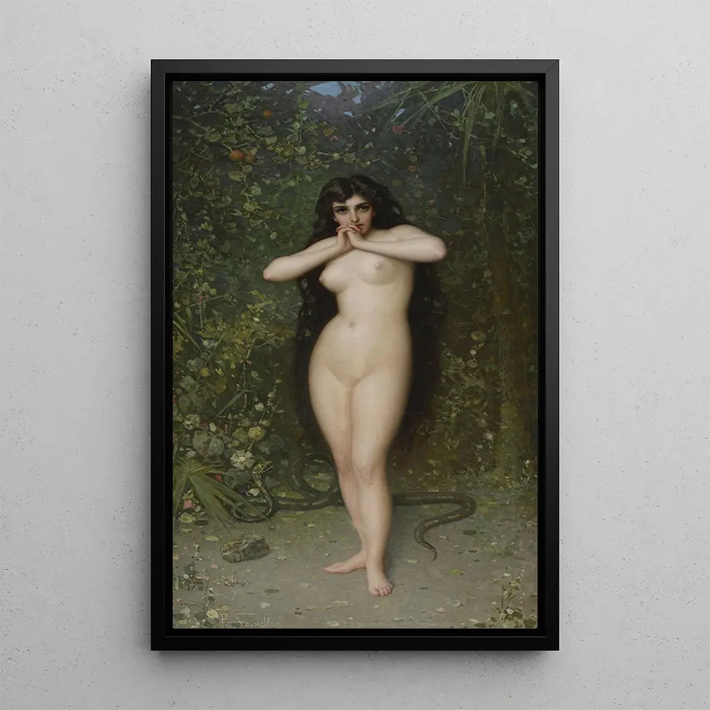 Kunsttrykket af 'Ève' er et ideelt dekorativt valg til forskellige rum såsom stuen, kontoret eller soveværelset. Dets troværdige reproduktionskvalitet giver mulighed for at nyde hvert eneste detalje af det originale værk, samtidig med at det tilføjer et strejf af elegance og sofistikation til dit hjem. Det æstetiske tiltrækningskraft ved dette lærred ligger i dets evne til at vække beundring og skabe samtale, hvilket gør dette kunstværk til et ægte fokuspunkt. At vælge dette kunsttryk er at vælge at integrere et kunstværk, der beriger atmosfæren i dit opholdsrum.