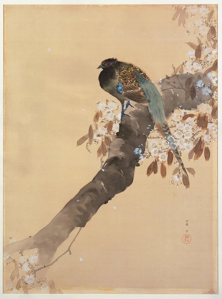 Faisan sur une branche de cerisier en fleurs - Ohara Koson