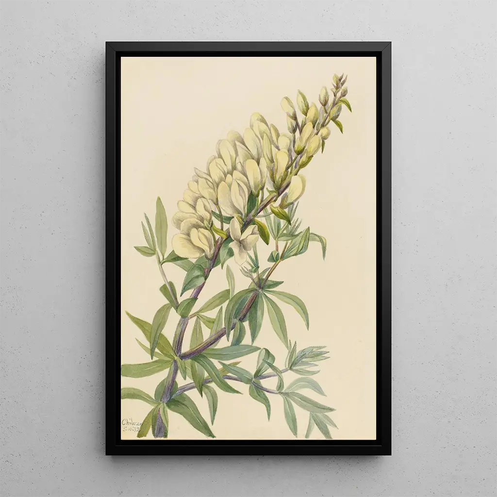 I denne kunsttryk af Faux indigo Baptista bructeata fanger Mary Vaux Walcott plantens delikatesse og skønhed. De livlige nuancer af blå og grøn blandes harmonisk, hvilket skaber en beroligende atmosfære, der inviterer til eftertanke. Akvarelteknikken, med sine subtile nuancer og fine detaljer, gør det muligt at mærke letheden af blomsterbladene og styrken af stilkene. Hvert penselstrøg synes at tilføre nyt liv til denne plante, hvilket gør dette værk til en ægte hyldest til naturen.