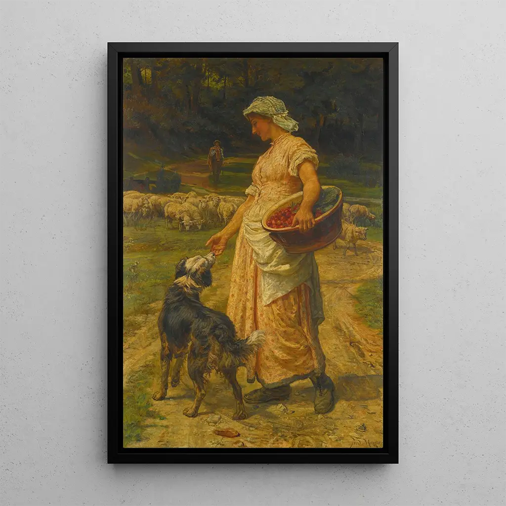 Frederick Morgan, aktiv i slutningen af det 19. og begyndelsen af det 20. århundrede, er kendt for sine idealiserede skildringer af landlivet og de unge kvinder. Påvirket af pre-rafaelitisismen, specialiserede han sig i værker, der vækker nostalgi og naturens skønhed. Hans kunsttryk, ofte præget af en drømmende atmosfære, fanger enkle livsmomenter, men fyldt med følelser. Morgan formåede at skabe sig en plads i kunstelskernes hjerter gennem sin evne til at kombinere raffineret teknik med følsomhed. La bergère er et af hans ikoniske kunsttryk, der perfekt illustrerer hans stil og hans tilknytning til idylliske temaer.