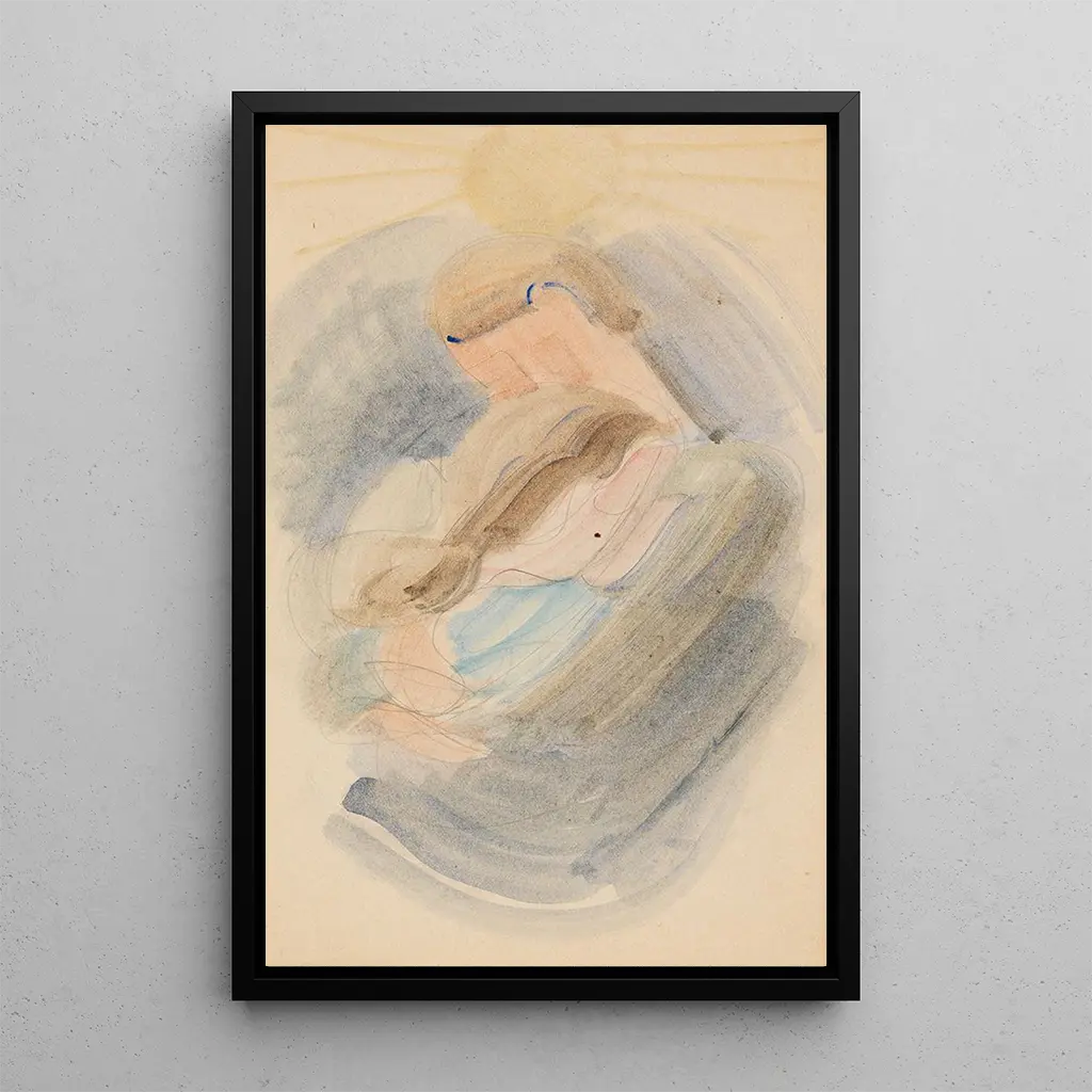Den kunsttryk af lærredet Érteinte II af Oskar Schlemmer fanger et øjeblik af intimitet og forbindelse mellem to stiliserede figurer. De sammenflettede former, med bløde konturer og varme farver, fremkalder en atmosfære af ømhed og samhørighed. Schlemmer, med sin unikke tilgang, formår at transcendere den enkle repræsentation for at tilbyde en poetisk vision af kærlighed. Kompositionen, både harmonisk og dynamisk, inviterer til en dyb refleksion over den menneskelige enhed, samtidig med at den spiller på kontrasterne mellem lys og skygge.