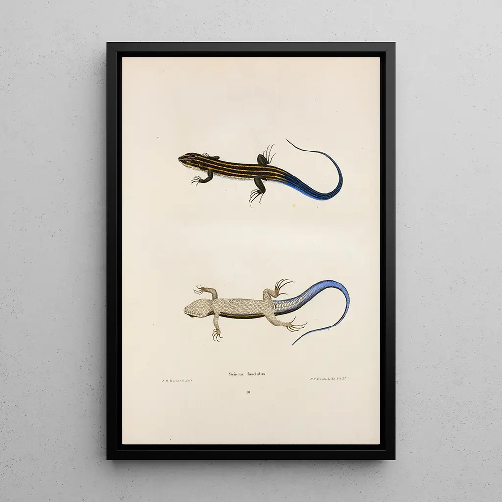 Kunsttrykket af "Scinque fascié" er et dekorativt stykke, der vil berige dit hjem, uanset om det er i en stue, et kontor eller et soveværelse. Dets trykkvalitet garanterer en bemærkelsesværdig trofasthed over for farver og detaljer i det originale værk, hvilket tilføjer et strejf af elegance og nysgerrighed til din indretning. Dette kunsttryk, ud over sin æstetiske tiltrækningskraft, fremkalder samtaler og inviterer til opdagelse af den naturlige verden. At vælge dette kunsttryk er at vælge et værk, der kombinerer kunstnerisk skønhed med videnskabelig interesse, perfekt for naturelskere og kunstentusiaster.