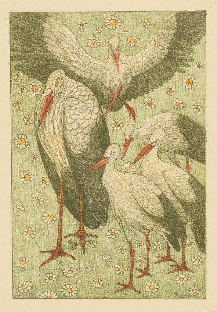 Kunsttryk | Cinq cigognes dans un pré - Theo van Hoytema