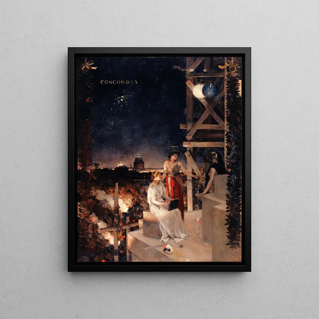 Jean Charles Cazin, en fransk impressionistisk kunstner, er berømt for sine scener fra dagliglivet og sine poetiske landskaber. I sit værk "Souvenir de fête à Paris" fanger Cazin stemningen af en parisisk festlighed med en palette af livlige og lyse farver. Kompositionen udstråler en glad og dynamisk atmosfære, typisk for den festlige ånd i Belle Époque. De menneskelige figurer, livlige og udtryksfulde, integreres harmonisk i det parisiske landskab, hvilket understreger den dybe forbindelse mellem kunst og byliv. Dette maleri, ud over sin historiske værdi, giver et vindue til et øjeblik af fællesskab og deling, hvilket gør det særligt attraktivt for kunst- og dekorationsentusiaster. I et moderne interiør kan et kunsttryk af dette værk tilføre en varm og livlig stemning, der inviterer seerne til at fejre livets skønhed. At opdage dette stykke på Artem Legrand ville være en smuk måde at bringe lidt glæde ind i sit rum.