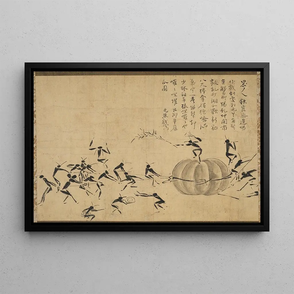 Kunsttrykket "Festival des insectes" af Matsurin Jōtō inviterer til en fordybelse i en livlig og farverig verden. De minutøse detaljer af insekterne, smukt gengivet, fanger essensen af naturen med fascinerende præcision. De strålende farver, der spænder fra frodige grønne til skinnende gule, skaber en glædelig og dynamisk atmosfære. Kunstnerens teknik, der kombinerer finesse og glans, gør det muligt at føle bevægelsen og livskraften i hver skabning. Dette kunsttryk, en sand hyldest til biodiversiteten, transporterer betragteren til et univers, hvor hvert insekt spiller en vigtig rolle i økosystemet.