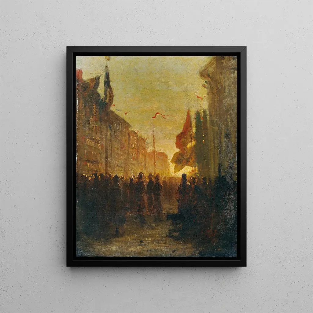 Reproduktion Drapeaux festifs - Alois Schönn – Introduktion fængslende I det fascinerende kunstunivers formår nogle værker at fange ånden af en æra, fremkalde følelser og skabe dyb refleksion. "Drapeaux festifs - Alois Schönn" er en af disse kunsttryk, der med sin livlighed og dristighed transporterer os til en verden, hvor fejring og glæde væves sammen med eftertanke. Dette værk, et sandt symbol på fest, inviterer os til at udforske den kulturelle traditioners rigdom, mens vi dykker ned i en palette af strålende farver. Gennem dynamiske mønstre og levende former giver Schönn os en jubelrig vision, der resonnerer med vores ønske om flugt og fællesskab. Stil og værkets særpræg Alois Schönns stil karakteriseres ved en dristig og innovativ tilgang, der udfordrer de kunstneriske konventioner. "Drapeaux festifs" skiller sig ud med sin brug af levende farver og dristige kompositioner, hvilket skaber en festlig og let atmosfære. Flagene, symboler på samling og fejring, svæver yndefuldt, hvilket fremkalder en følelse af bevægelse og liv. Den måde Schönn leger med lys og skygge på, tilføjer en ny dybde til værket, mens de stiliserede former af flagene næsten synes at danse på lærredet. Denne blanding af dynamik og ro gør dette værk til et sandt mesterværk, der fanger øjet og fanger sindet. Kunstneren og hans indflydelse Alois Schönn er en kunstner, hvis værker er en del af en rig tradition, samtidig med at de skiller sig ud gennem sin originalitet. Påvirket af samtidige kunstbevægelser formår han at integrere elementer af populærkulturen i sine værker, mens han bevarer en unik kunstnerisk følsomhed. Hans arbejde er i konstant dialog med kunstneriske traditioner, samtidig med at han søger at forny det visuelle sprog. Schönn udforsker universelle temaer som glæde, fællesskab og fejring, hvilket giver ham mulighed for at nå et bredt publikum. Hans indflydelse mærkes ikke kun i hans egne værker, men også i værker af andre kunstnere, der inspireres af hans evne til at forene tradition og modernitet. En enestående vægdekoration signeret Artem