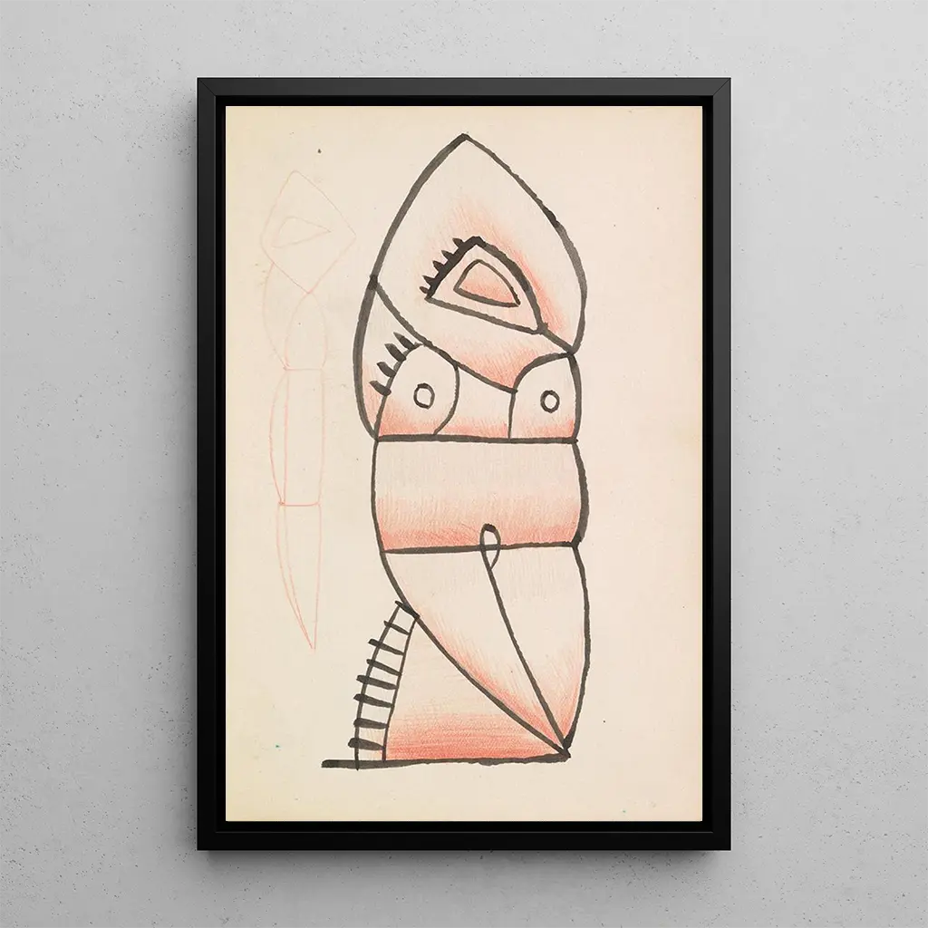 Kunsttrykket af "Figur i knælestilling" af Henri Gaudier-Brzeska er en hyldest til den menneskelige form i al sin kompleksitet. Dette værk i marmor, med sine flydende linjer og harmoniske volumener, fremkalder en følelse af ro og eftertanke. Figuren i knælestilling, både sårbar og stærk, inviterer betragteren til at reflektere over den menneskelige tilstand. De delikate nuancer i marmoren, der leger med lyset, tilføjer en næsten levende dimension til skulpturen, og hylder skønheden i den feminine form, samtidig med at den fanger øjeblikkets essens.