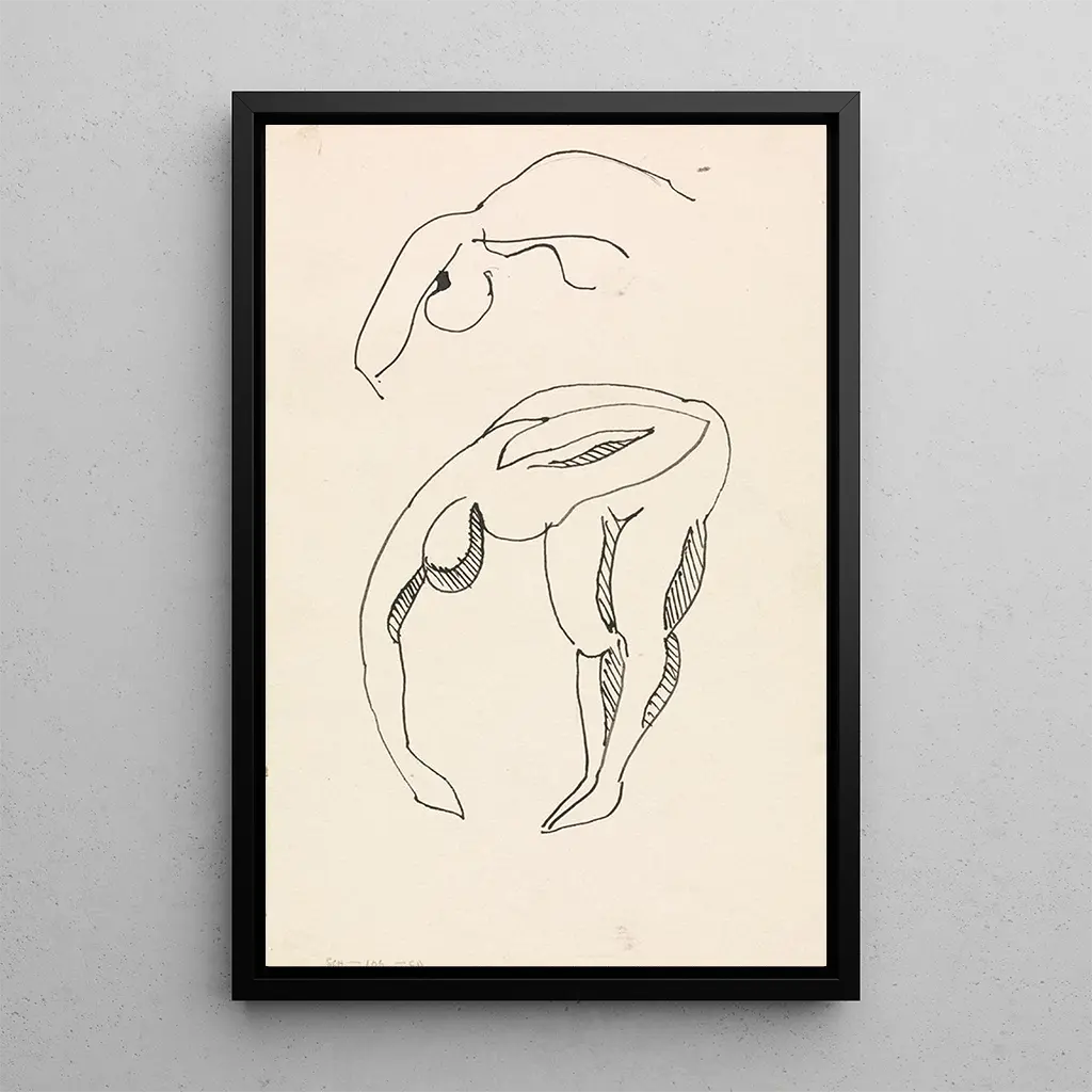 "Figur i skråning" af Henri Gaudier-Brzeska er et værk, der indfanger selve essensen af menneskeligt bevægelse. Figuren, både dynamisk og delikat, fremkalder en mærkbar spænding mellem balance og tyngdekraft. De flydende konturer og de stiliserede former vidner om en bemærkelsesværdig teknisk mestring, hvor hver linje synes at vibrere af energi. Farvepaletten, ofte begrænset, understreger den udtryksfulde kraft i kunstværket og inviterer betragteren til at føle den emotion, der udspringer af denne repræsentation. Dette kunsttryk overskrider den enkle figurative fremstilling for at blive en poetisk udforskning af den menneskelige tilstand.