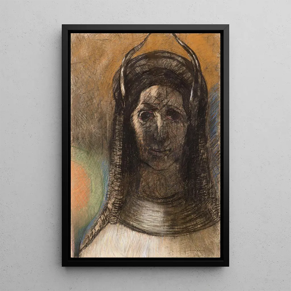Odilon Redon, en ikonisk figur i symbolismens bevægelse, markerede slutningen af det 19. århundrede med sin unikke tilgang til kunst. Født i 1840 i Bordeaux, blev han påvirket af kunstnere som Gustave Moreau og forfattere som Charles Baudelaire. Redon formåede at distancere sig fra tidens konventioner for at udforske mystiske og psykologiske temaer. Hans arbejde, ofte præget af drømme og visioner, afspejler en søgen efter mening og en udforskning af det ubevidste. Figuren cornue passer perfekt ind i denne tilgang og vidner om hans interesse for symboler og repræsentationer af den menneskelige sjæl.