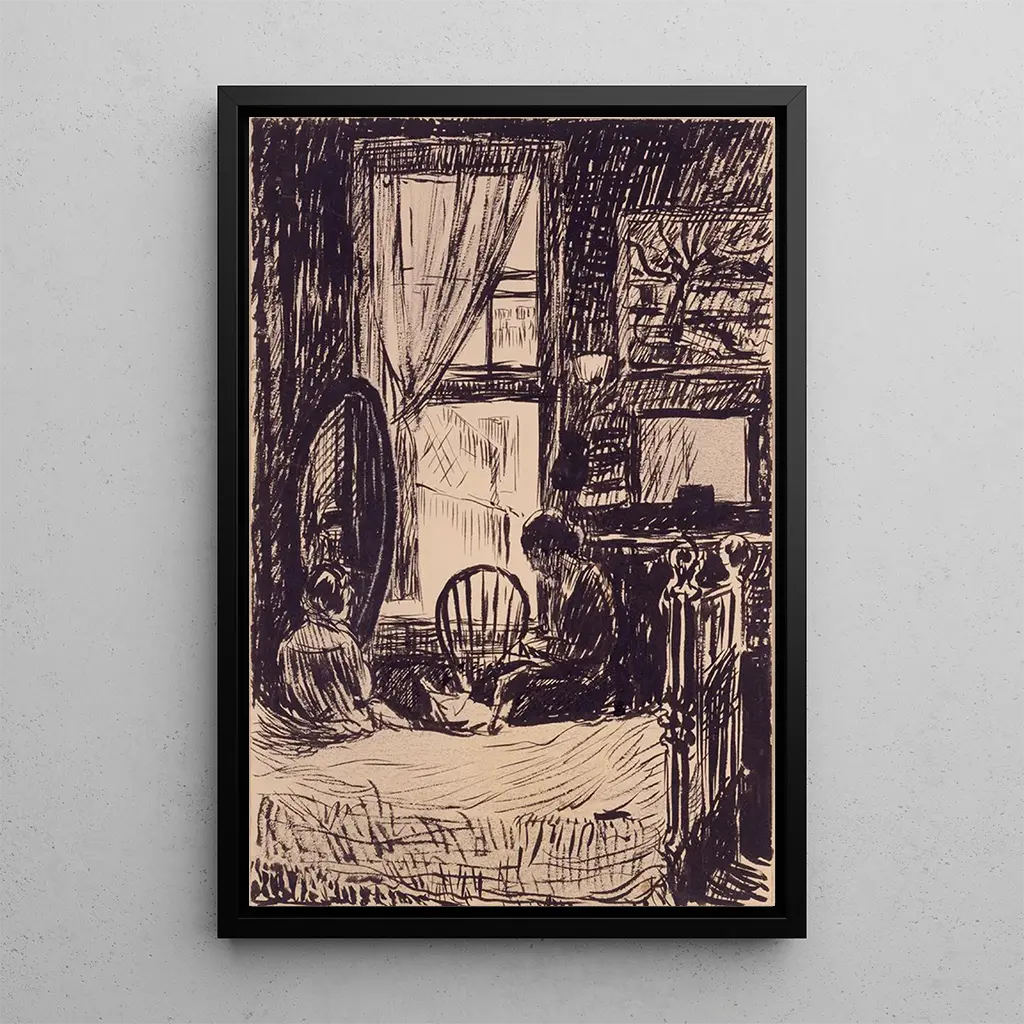 Kunsttrykket af "Figurer foran vinduet" er et ideelt dekorativt stykke til at berige dit hjem, uanset om det er i en stue, et kontor eller et soveværelse. Det beroligende farvepalet og det fængslende motiv tilføjer et strejf af sofistikeret elegance til ethvert rum. Kvaliteten af kunsttrykket sikrer en bemærkelsesværdig trofasthed til det originale værk, hvilket gør det muligt at nyde dets æstetiske appel dagligt. Ved at vælge dette kunsttryk, vælger du et værk, der ikke blot forbedrer din indretning, men også fremkalder en atmosfære af hygge og menneskelig varme.