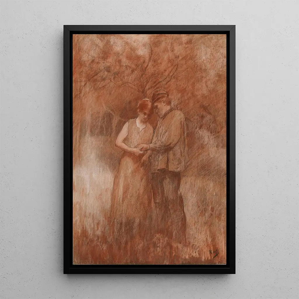 L'œuvre "Studie af figur" af Alfred Philippe Roll er en sand hyldest til skønheden i den menneskelige krop. I dette lærred bruger kunstneren varme farver og delikate nuancer til at fremhæve konturerne og volumenerne af figurerne. Lyset spiller en afgørende rolle, idet det skaber subtile skygger, der tilføjer dybde til kompositionen. Roll formår at fange en atmosfære, der er både intim og dynamisk, hvilket inviterer beskueren til at reflektere over følelserne hos de portrætterede personer. Denne studie er langt fra blot en akademisk øvelse; den afslører en kunstnerisk følsomhed, der overskrider tidens grænser.