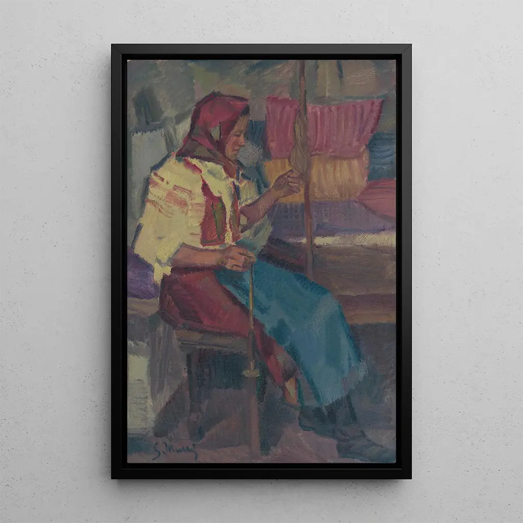 Den kunsttryk af "Fileuse de Mork Hj" indfanger essensen af et øjeblik, der er ophørt i tiden, hvor tradition og håndværk mødes. De varme, jordnære farver på lærredet fremkalder en atmosfære af komfort og autenticitet. Kunstnerens teknik, kendetegnet ved detaljerede finurligheder og en harmonisk komposition, fører os ind i håndværkets univers. Hvert element i værket synes at fortælle historien om et liv dedikeret til spinding, og tilbyder en poetisk vision af dette ældgamle erhverv. Dette lærred inviterer os til at værdsætte skønheden i enkle gestus og den viden, der er blevet videreført gennem generationer.