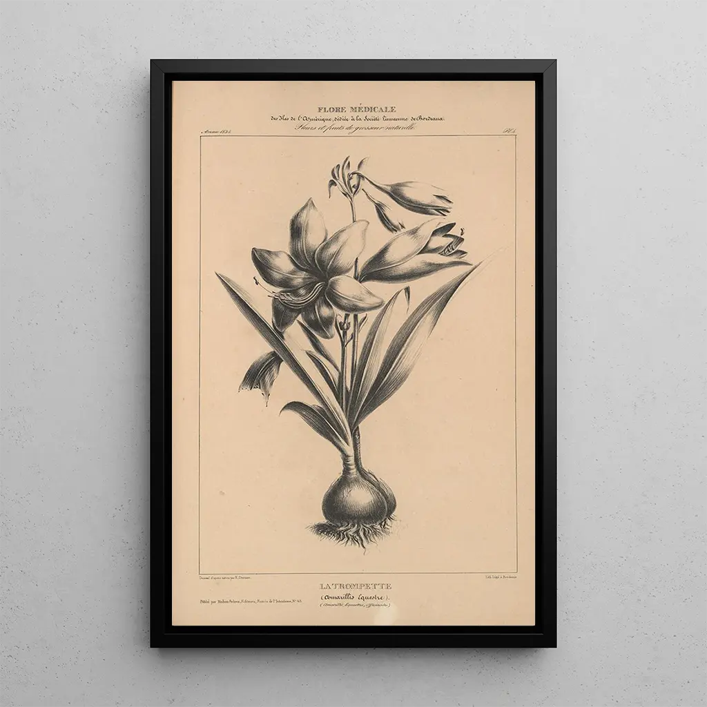 Kunsttrykket Flore d'Amérique Pl28 af Étienne Denisse tager os med ind i en livlig verden af farver og former. Dette lærred, rigt på detaljer, fremhæver en række eksotiske planter, hvor hvert blad og hver blomst er omhyggeligt gengivet. De strålende nuancer af grøn, gul og rød skaber en varm og indbydende atmosfære, der inviterer betragteren til at udforske floraens rigdom. Denisses teknik, der kombinerer præcision og følsomhed, gør det næsten muligt at føle teksturen af planterne, som om man kunne røre ved dem. Dette værk er en ægte fejring af naturen, en hyldest til dens skønhed og mangfoldighed.
