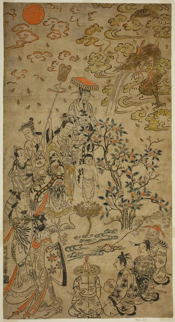 Kunsttryk af Naissance du Bouddha - Hanegawa Chinchō