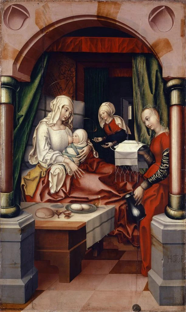 Maleri af Jomfru Marias fødsel - Hans Fries | Kunsttryk