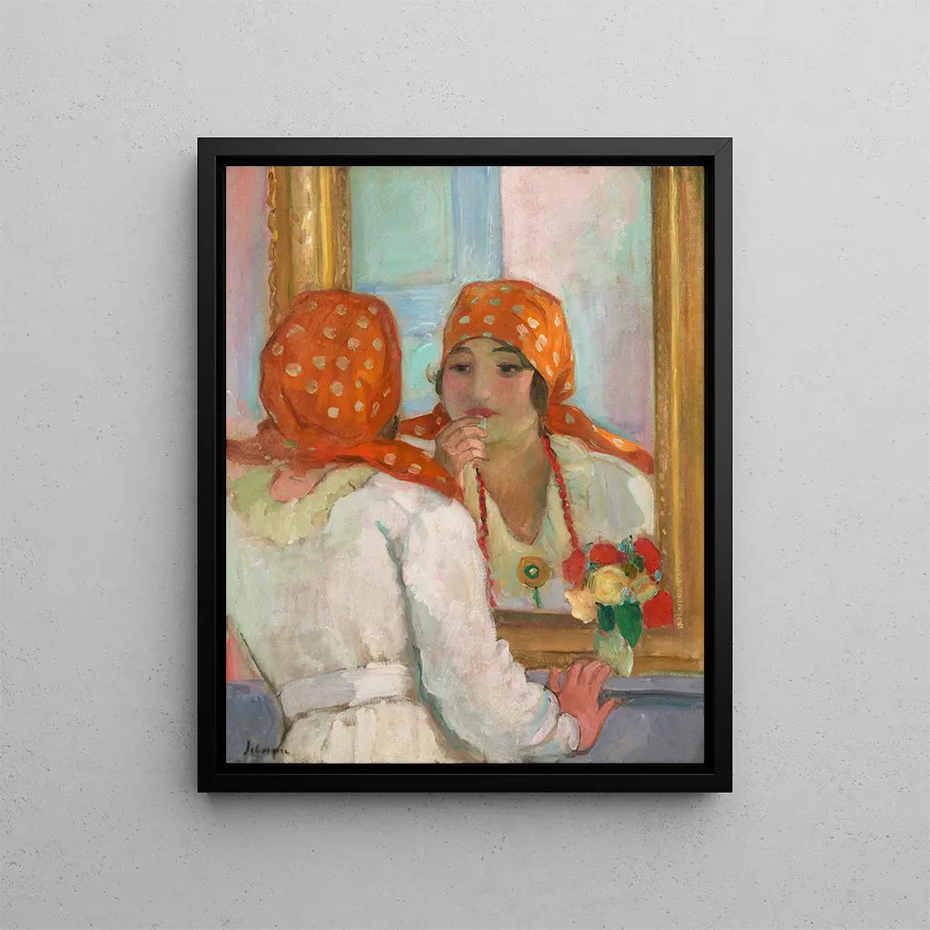 Henri Lebasque, fransk maler, er berømt for sine skildringer af dagligdags scener og livlige portrætter. 'Foran spejlet' er et værk, der fanger essensen af kvindelighed gennem skildringen af en kvinde, der ser sig selv i et spejl. Lyset, der reflekteres på overfladerne, og de livlige farver, Lebasque bruger, skaber en atmosfære, der er både intim og glædelig. Dette maleri, udført i begyndelsen af det 20. århundrede, afslører ikke kun kunstnerens talent for at fange skønhed, men også hans evne til at fremkalde følelser gennem komposition og farve. I den nuværende indretningstrend kan dette værk tilføre et strejf af elegance og raffinement til ethvert rum. Kunstelskere vil værdsætte, hvordan Lebasque leger med lys og skygger, hvilket giver en fængslende visuel oplevelse. En invitation til at opdage dette værk kan findes på Artem Legrand.