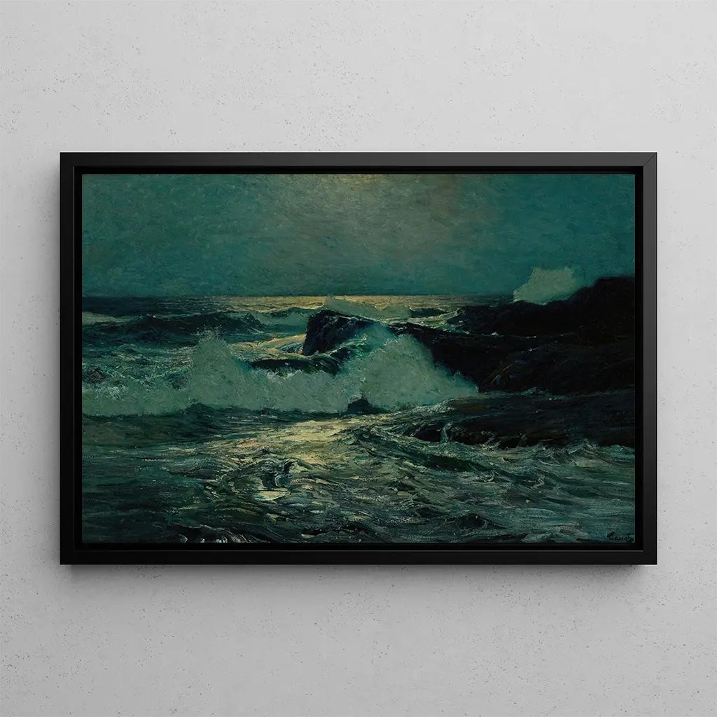 I "Lever de lune précoce" tager Frederick Judd Waugh os med ind i en verden, hvor naturen vågner under de bløde reflekser fra månen. Kompositionen domineres af nuancer af blå og sølv, hvilket skaber en rolig og eftertænksom atmosfære. Bølgerne, delikat stiliserede, synes at danse under vindens pust, mens den natlige himmel, dækket af stjerner, omgiver landskabet med en håndgribelig magi. Waughs teknik, der kombinerer akvarel og olie, giver liv til dette kunsttryk, hvor hver detalje er lige så levende som en let brise. Dette kunsttryk inviterer til drømme, flugt og beundring af naturens vidundere.