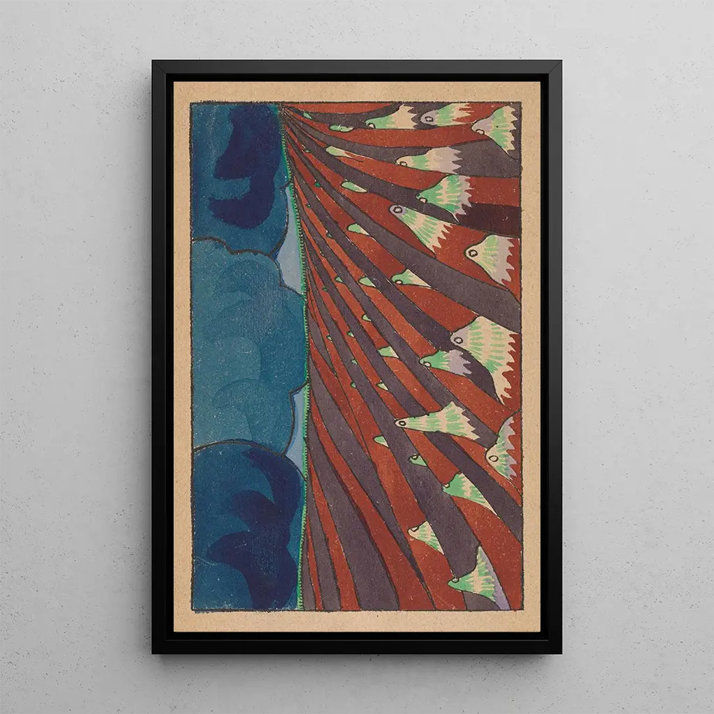 Le sacre du printemps, etnisk kunsttryk af Léon Bakst, skiller sig ud med sin livlige palet og dristige mønstre. Dette lærred, inspireret af Stravinskys ballet, fremkalder en festlig, hedensk atmosfære, hvor naturen og menneskeheden mødes i en vild dans. De strålende farver, fra dybe røde til frodige grønne nuancer, fanger energien og passionen hos figurerne. Baksts teknik, der kombinerer akvarel og gouache, giver liv til flydende og dynamiske former, hvilket skaber en fornemmelse af evig bevægelse. Hvert detalje, hver penselstrøg, bidrager til en mystisk og festlig stemning, der inviterer betragteren til at dykke ned i denne fortryllende verden.