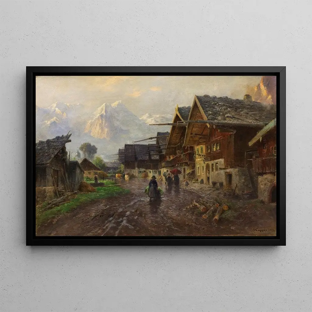 La Rue du Printemps à Garmisch : en hyldest til den blomstrende natur La Rue du Printemps à Garmisch er et livligt kunsttryk, der fremkalder den blide forårsstemning i fuld flor. Pastelfarver, der spænder fra bløde grønne nuancer til strålende rosa, blander sig harmonisk for at skabe en rolig og glædesfyldt atmosfære. Akvarelteknikken, anvendt af Albert Kappis, gør det muligt at fange lyset og gennemsigtigheden i blomsterne, samtidig med at den giver liv til den livlige scene med forbipasserende. Hvert penselstrøg synes at danse på lærredet og inviterer betragteren til at fordybe sig i denne forårspromenade, hvor naturen og menneskeheden eksisterer i perfekt harmoni. Albert Kappis : en mester i lys og farve Albert Kappis, tysk kunstner aktiv i begyndelsen af det 20. århundrede, er kendt for sin evne til at oversætte skønheden i naturlige landskaber til fængslende kunstværker. Påvirket af impressionismen, har han viet sig til at udforske lysvirkninger på naturen. Hans skabende periode falder sammen med en kunstnerisk fornyelse i Europa, hvor kunstnere søger at frigøre sig fra akademiske konventioner for at omfavne mere frit og udtryksfuldt stil. Kappis, gennem sine landskaber, transporterer os til en verden, hvor hver sæson fejres, og hvor naturens flygtige skønhed fremhæves. En dekorativ erhvervelse med mange fordele Kunsttrykket af La Rue du Printemps à Garmisch er et ideelt dekorativt valg til at forskønne dit hjem, uanset om det er i stuen, på kontoret eller i soveværelset. Det bløde og beroligende farvepalet tilføjer et strejf af friskhed og ro til ethvert rum. Kvaliteten af kunsttrykket sikrer en bemærkelsesværdig trofasthed til det originale værk, hvilket gør det muligt at nyde dets æstetiske appel uden kompromis. Ved at vælge dette billede giver du din indretning et kunstnerisk præg, der fremkalder naturens skønhed og inviterer til eftertanke.