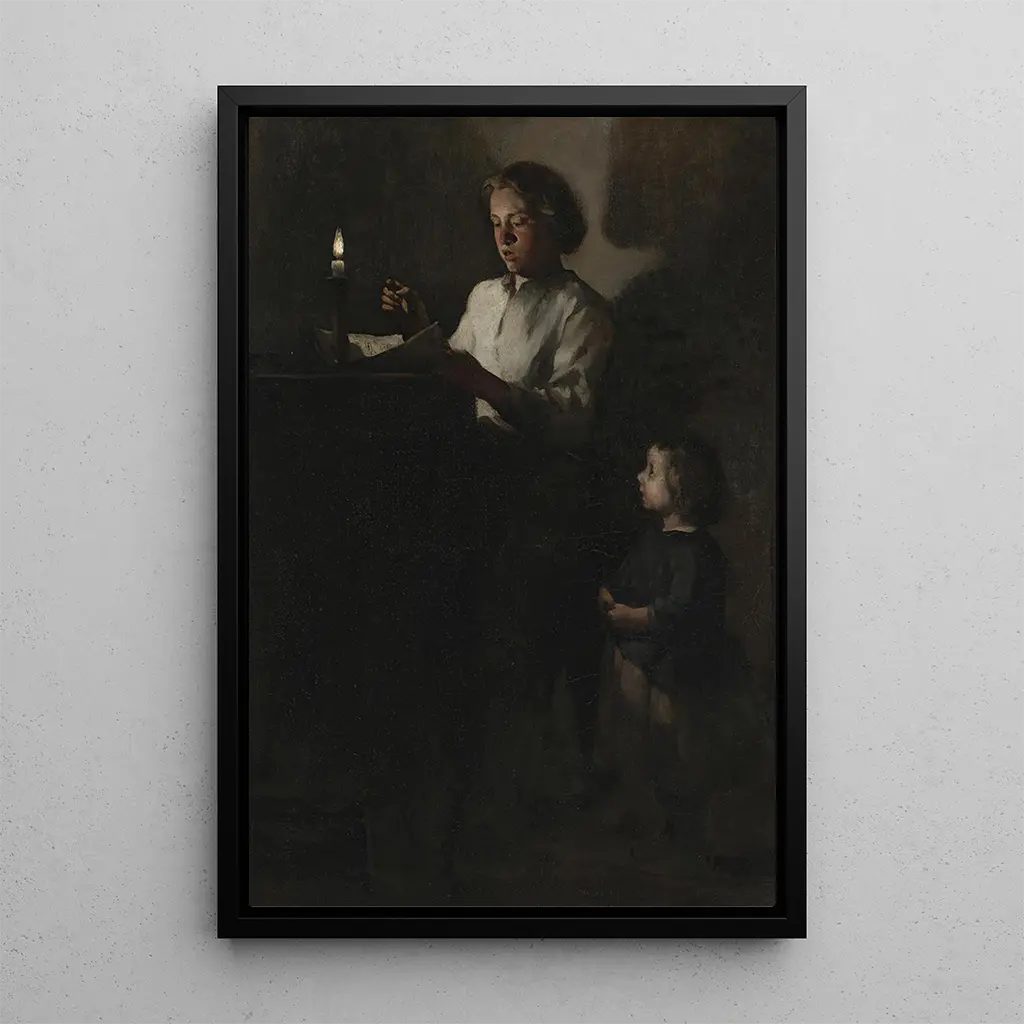 Kunsttrykket af Læsning ved stearinlys er et ideelt valg til at berige din indretning, hvad enten det er i en stue, et bibliotek eller et kontor. Dets trykkvalitet og trofasthed mod nuancerne i det originale værk gør dette lærred til en ægte æstetisk fordel. Ved at integrere dette kunstværk i dit rum, tilføjer du en varm og fredelig stemning, samtidig med at du hylder Théodule Ribots kunst. Dette maleri inviterer til eftertanke og drømmeri, og skaber en atmosfære, der indbyder til afslapning og flugt.