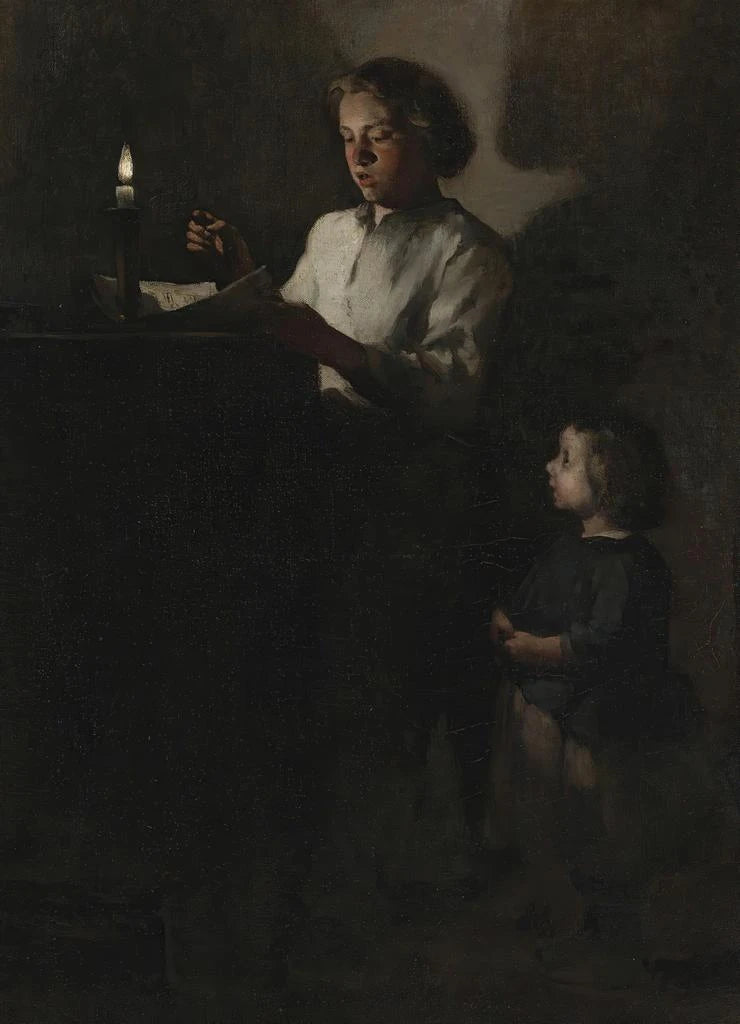 Maleri Læsning ved stearinlys - Théodule Ribot | Kunsttryk