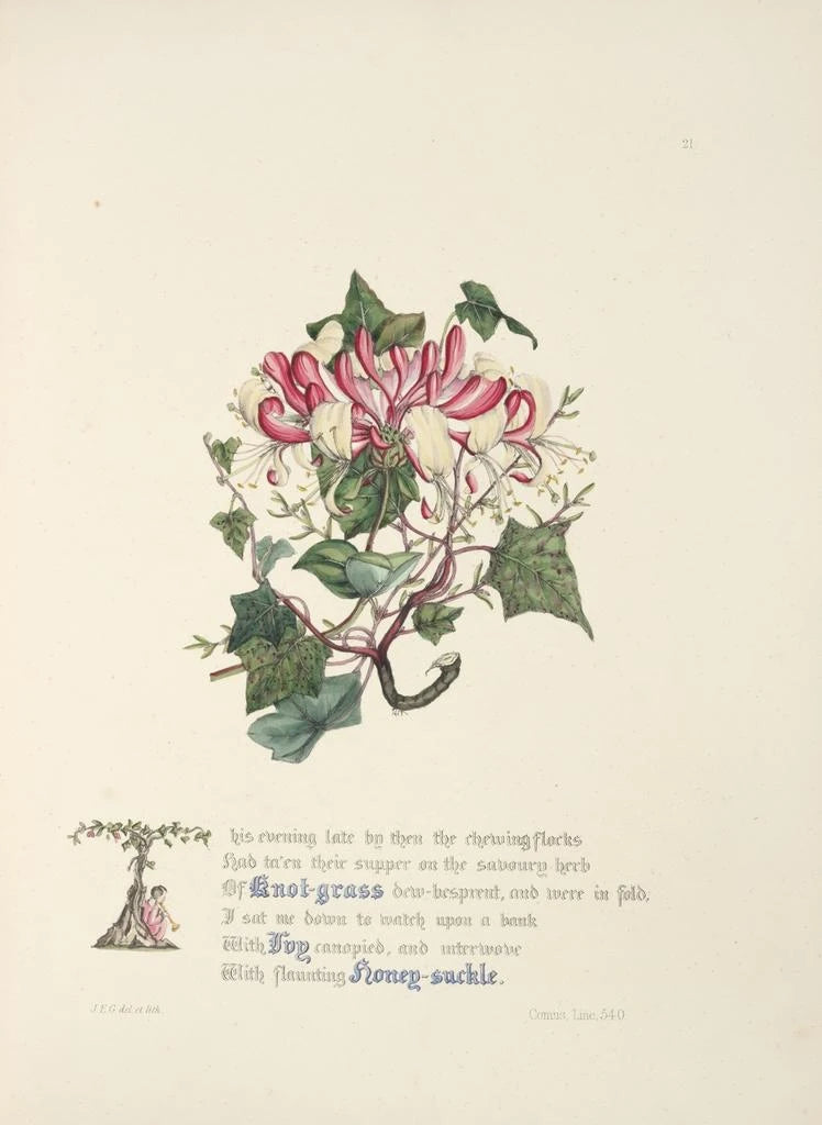 Maleri Renouée lierre og kaprifolium - Jane Elizabeth Giraud | Kunsttryk Source: Tableau Renouée lierre et chèvrefeuille - Jane Elizabeth Giraud | Reproduction