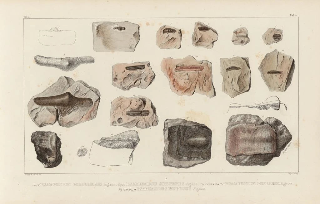Reproduktion Recherches sur les poissons fossiles Pl289 : en rejse gennem tidernes hav