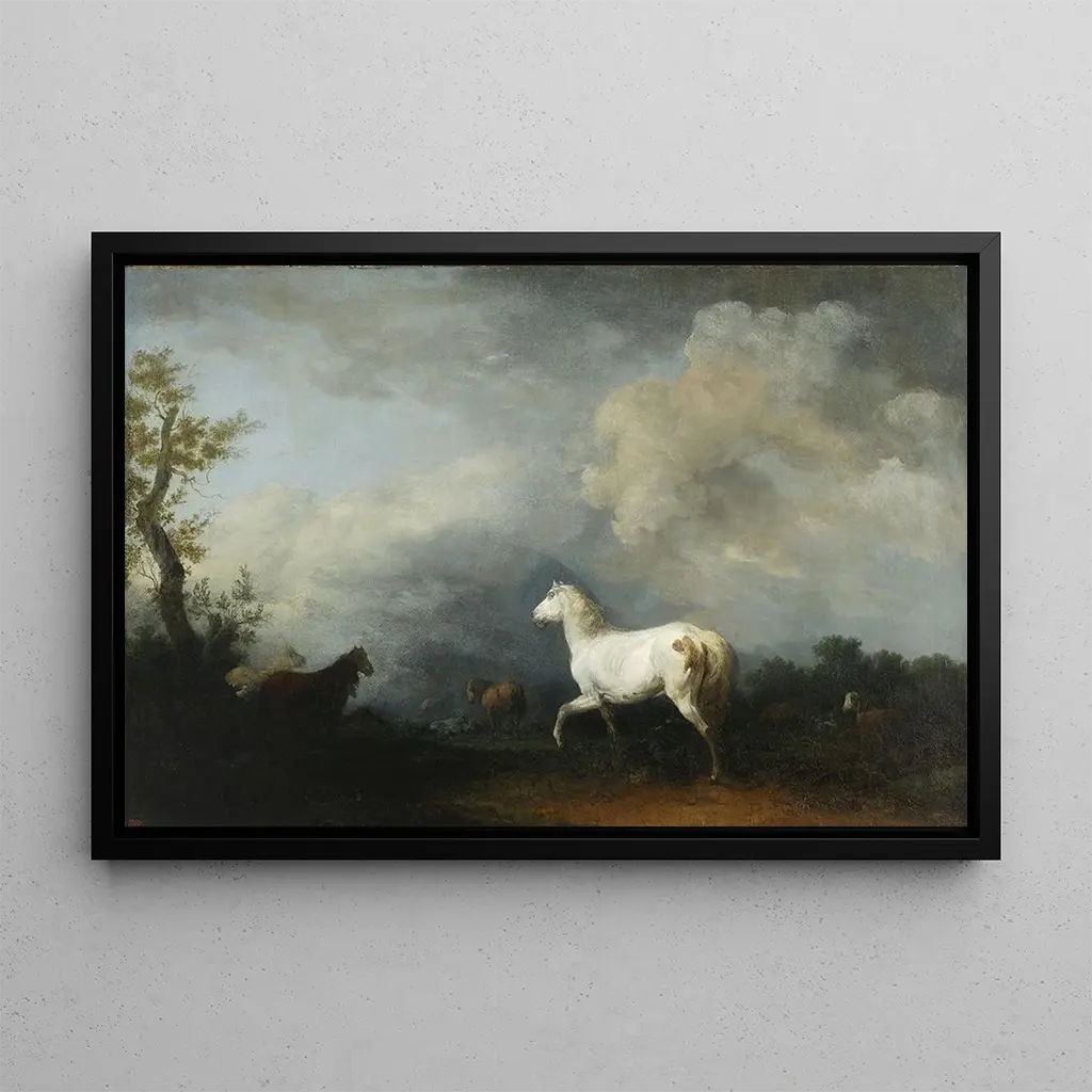 Francesco Giuseppe Casanova, aktiv i det 18. århundrede, er kendt for sine værker, der fremhæver skønheden af dyr, især heste. Påvirket af barokstilen, kendetegnes hans stil ved en omhyggelig opmærksomhed på detaljer og en evne til at fange essensen af sine motiver. Casanova har formået at gøre sig gældende i kunstverdenen takket være sin dybe forståelse af form og bevægelse, hvilket har gjort ham i stand til at skabe dynamiske og levende kompositioner. Hans arbejde er et spejl af den tid, hvor naturen og den realistiske fremstilling af dyr var i centrum for kunstneriske bekymringer.