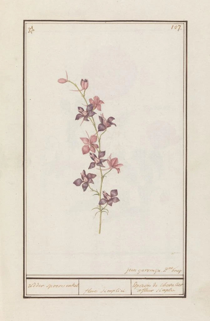 Maleri Pied d'alouette Consolida - Jan Anton Garemyn | Kunsttryk Source: Tableau Pied d'alouette Consolida - Jan Anton Garemyn | Reproduction