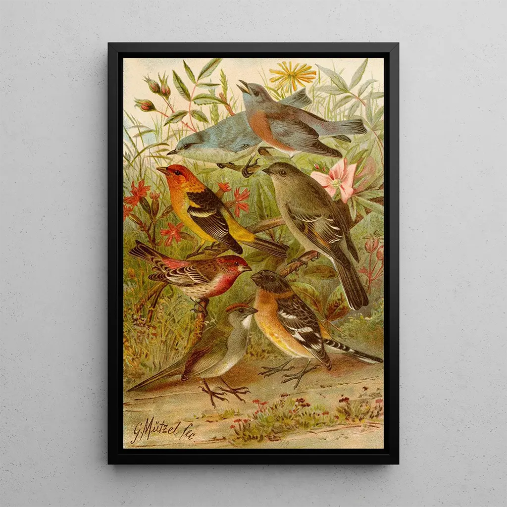 I denne kunsttryk af maleriet "Le monde des oiseaux nord-américains pl21" tager Gustav Mützel os med til hjertet af et rigt og farverigt økosystem. Fuglene, gengivet med bemærkelsesværdig omhu, skiller sig ud med deres prangende fjerdragt og naturlige holdning. Nuancer af grøn, blå og gul blander sig harmonisk og skaber en glad og livlig atmosfære. Mützels teknik, der kombinerer realisme og kunstnerisk følsomhed, gør det muligt at føle letheden og ynde af disse vingerede skabninger, hvilket inviterer betragteren til at forundres over naturens skønhed.