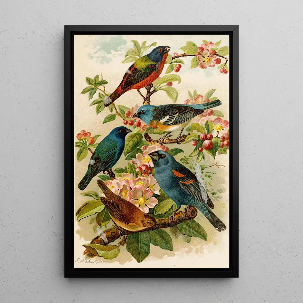 La kunsttryk af maleriet "Le monde des oiseaux nord-américains pl28" af Gustav Mützel transporterer os til en verden, hvor hvert fugl fejres for sin unikke skønhed. De livlige farver og de omhyggelige detaljer i fjerdragten fanger øjet, mens den afbalancerede komposition fremkalder en naturlig harmoni. Mützel, med sit uovertrufne talent, formår at eviggøre disse skabninger i deres miljø, hvilket skaber en scene, der ånder af liv. Dette værk er en ægte invitation til fordybelse, hvor hvert blik afslører en ny nuance, en ny bevægelse, som om fuglene får liv foran vores øjne.