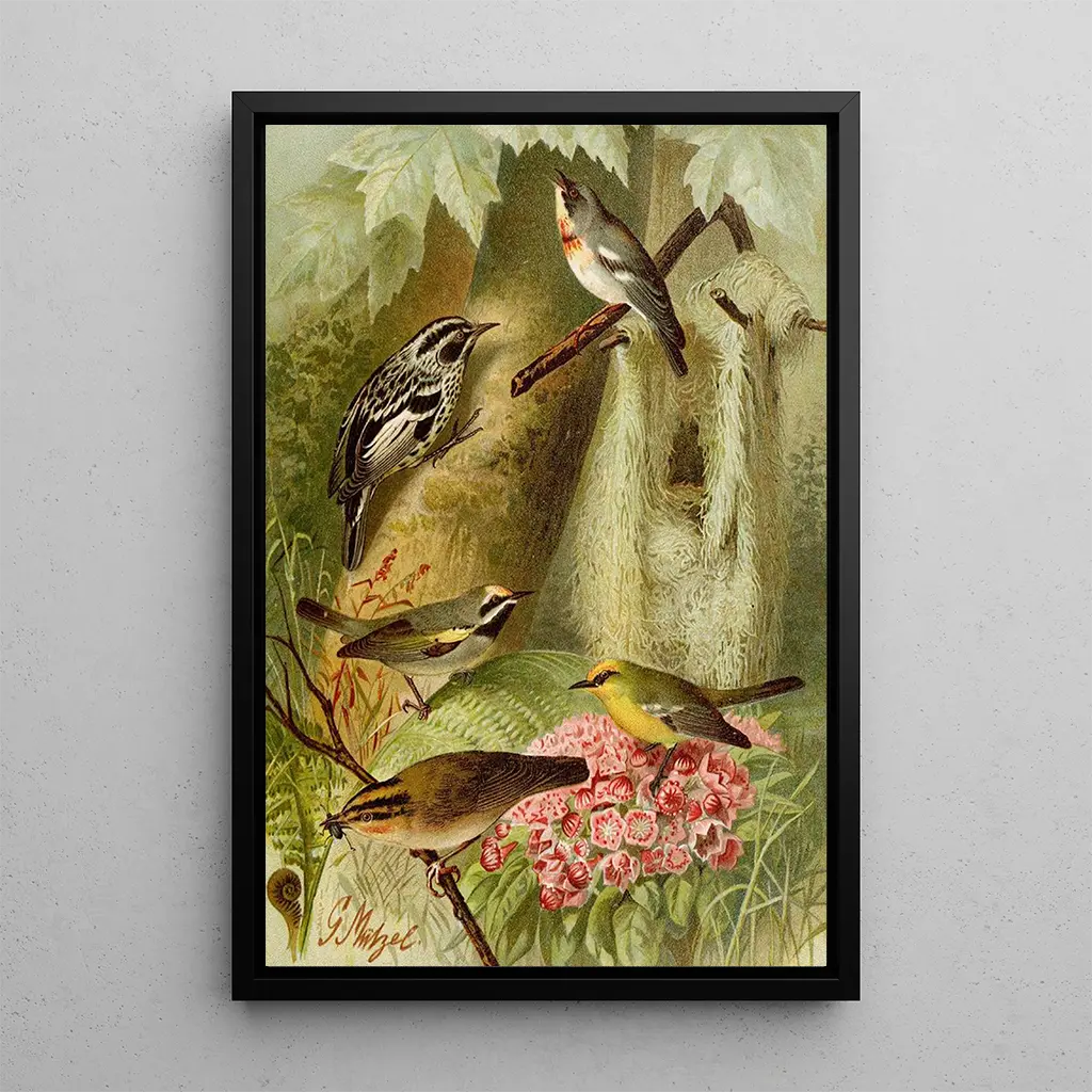 I denne kunsttryk af maleriet "Verden af nordamerikanske fugle pl12" tager Gustav Mützel os med til hjertet af en livlig og farverig natur. Fuglene, gengivet med bemærkelsesværdig præcision, får liv i et frodigt landskab. Nuancerne af grønt og blåt blander sig harmonisk, hvilket skaber en fredelig og kontemplativ atmosfære. Mützels teknik, der kombinerer akvarel og tegning, gør det muligt at fange ikke kun detaljerne i fjerdragten, men også lyset, der leger over bladene og himlen. Hvert element i dette værk synes at invitere betragteren til at forundres over skønheden i fuglefaunen.