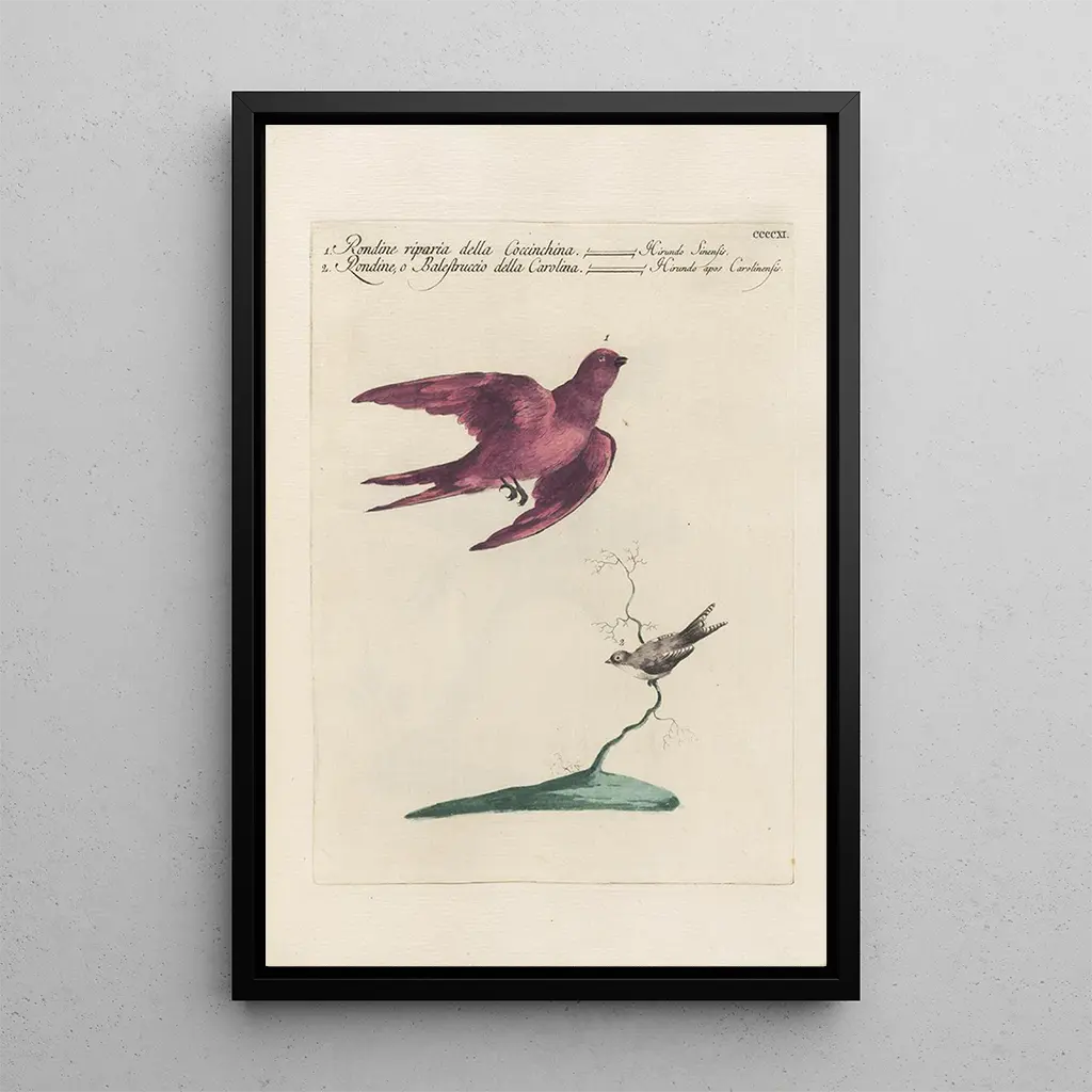 Kunsttrykket af Ornithologia-metode digesa Pl393 af Saverio Manetti er en sand hyldest til mangfoldigheden og pragtfuldheden af fugle. Dette fængslende værk skiller sig ud med sine livlige farver og detaljerede elementer, der fordyber betragteren i en fascinerende naturlig verden. De strålende nuancer i fjerdragten, kombineret med en harmonisk komposition, skaber en atmosfære, der er både rolig og dynamisk. Manetti, med sin præcise teknik, formår at fange essensen af hver art og inviterer til en langvarig betragning af disse vingerede skabninger.