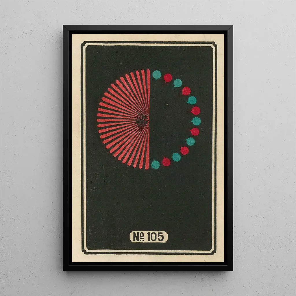 Kunsttrykket af "Nattlige fyrværkeri nr. 105" tager os med på et natligt show, hvor de strålende farver smukt flettes sammen. Jinta Hirayama, med sin beherskelse af nuancer, formår at fange essensen af disse lysskyer, der lyser himlen op. De livlige nuancer, fra brændende orange til dybe violet, skaber en stemning, der både er festlig og eftertænksom. Hvert blik på dette lærred fremkalder en følelse af glæde og forundring, som om man er til stede ved en ægte festival, omgivet af latter og bifald.