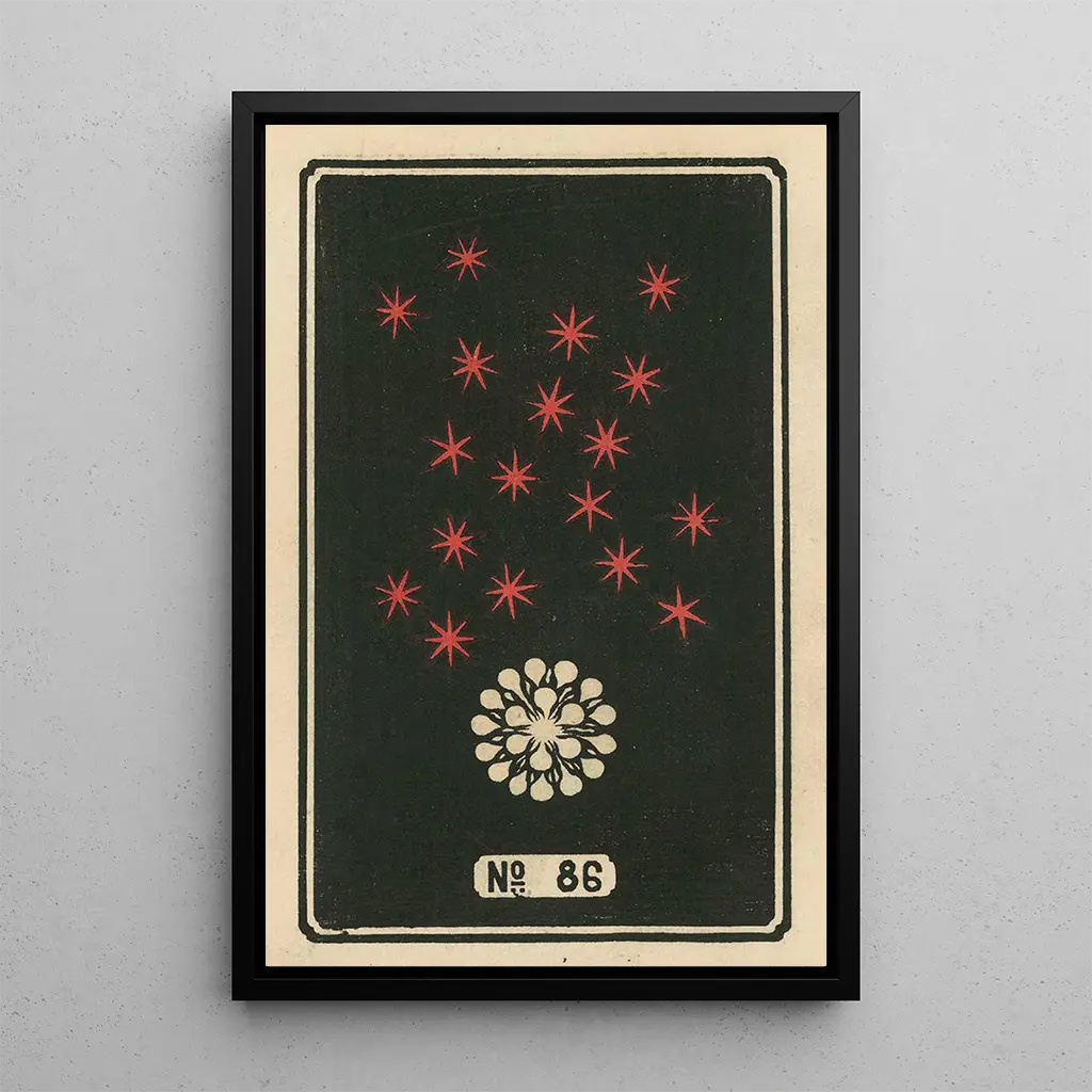 Kunsttrykket af "Feux d'artifice nocturnes nr. 86" af Jinta Hirayama tager os med på et lysende show, hvor farverne eksploderer på den mørke himmel. De levende nuancer af rød, blå og guld flettes sammen og skaber en festlig og glædesfyldt atmosfære. Kunstnerens teknik, der kombinerer akvarel og blæk, giver liv til hvert fyrværkeri og gør dem næsten håndgribelige. Man føler en invitation til festlighed, en flugt til sommernætter, hvor stjernerne blander sig med fyrværkeri og lyser op i de forundrede ansigter hos tilskuerne.